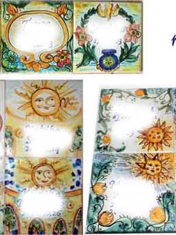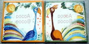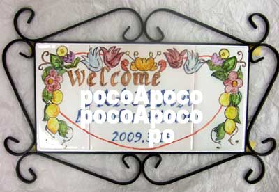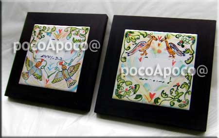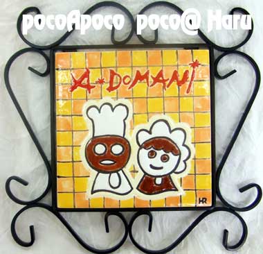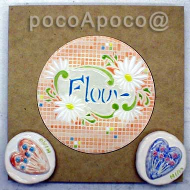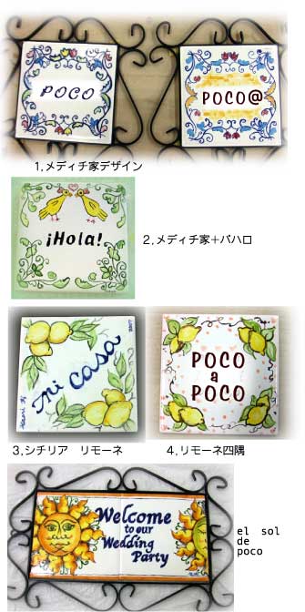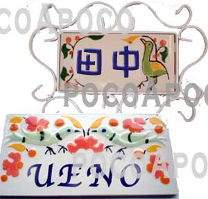 ☆タイル表札、手づくりタイル、pocoApoco。マジョリカ焼作家がつくる世界に一枚の表札。看板、ウェルカムボード。大阪のアトリエで打ち合わせ、制作途中もご覧になれます。注文者が制作に参加することも可能です。pocoApocoの表札タイル屋さん開始。スペインやイタリア、日本の材料と技術でメイドイン大阪の表札タイルです。 お買い上げいただいたオンリーワンタイル。木枠入りポコポコ強。 | |||||||||||||||||||||||