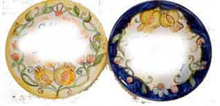 2種類の技法。意匠は、著作権により、そのままは使えませんが、見た印象で近づけました。 >>>>詳細は[セレサポタイル」より。 | |||||||||||||||||||||||