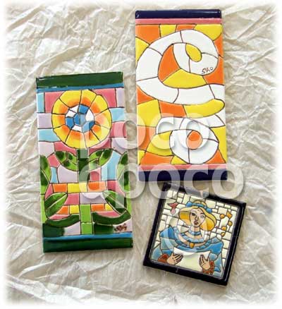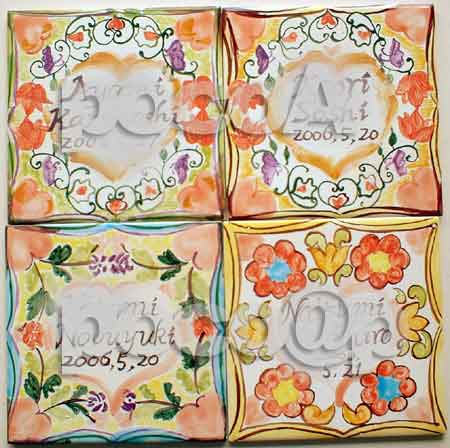 ご注文の場合の販売価格(単色テクニック) ¥24,000.-アイアンフレーム別売)。 お二人でも一緒に制作できます。制作レッスン ¥18,900.-(アイアンフレーム別売) ウエディングタイル2011,10月